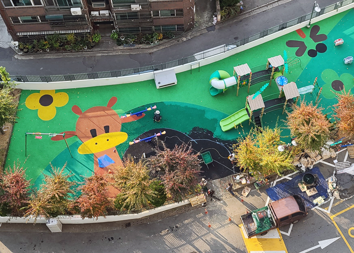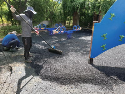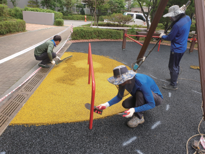• 이후 하부무칩을 포설 (양생 1 ~ 2일) 후 상부칩을 포설하여 마무리합니다.