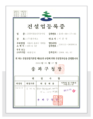 또한, KS 및 단체표준 인증과 친환경 인증을 획득하여 최고의 품질을 납품, 시공하고 있습니다.